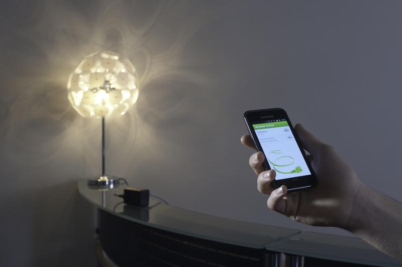 Die Tischlampe lässt sich per Smartphone einschalten - die HexaBus-Funksteckdose macht's möglich. Quelle: (c) Fraunhofer ESK (idw)