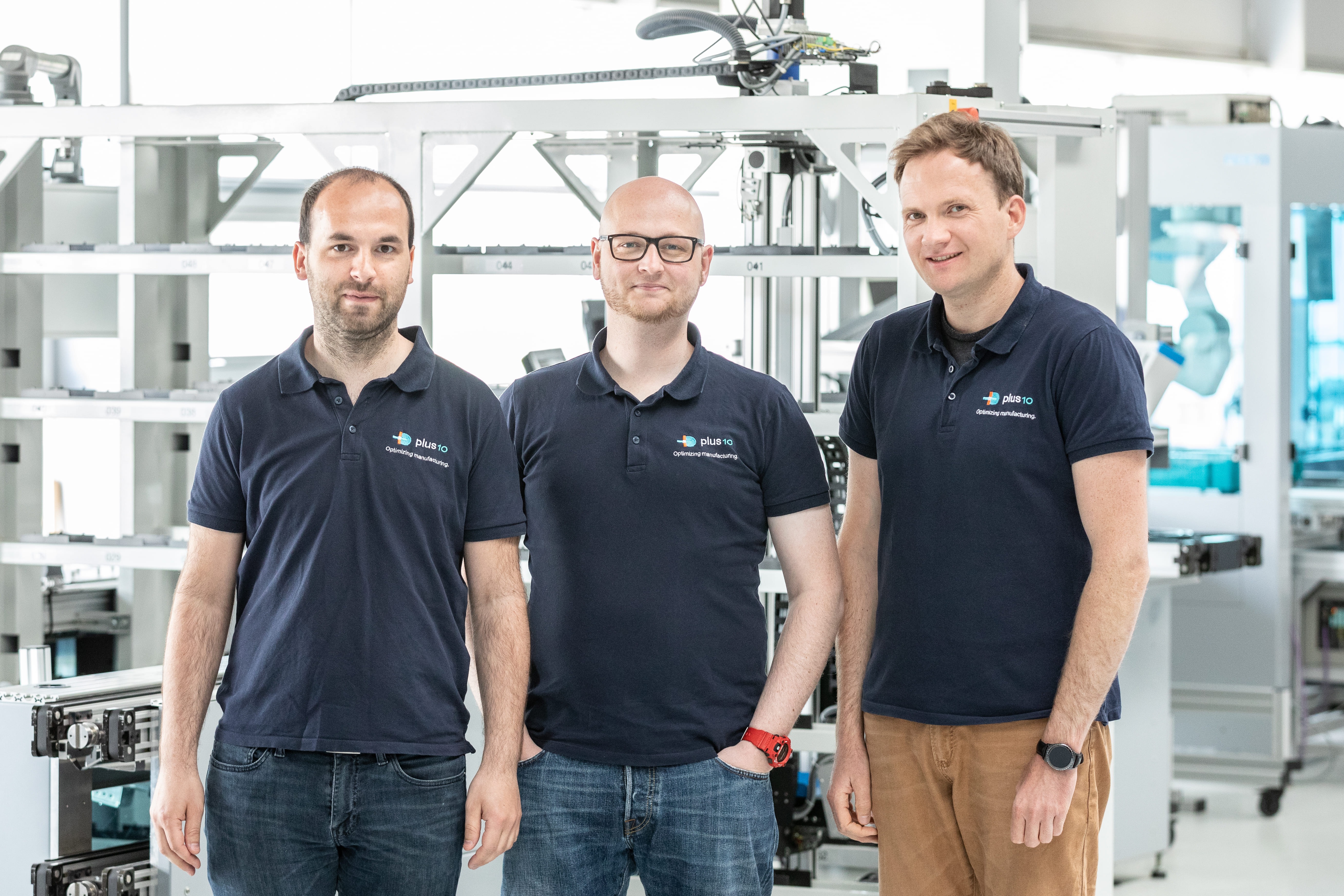 Thomas Hilzbrich, Pablo Mayer und Felix Müller (v. l.) haben die »Smarte Systemoptimierung« entwickelt und das Start-up plus10 GmbH gegründet. Quelle: Fraunhofer IPA/Foto: Rainer Bez (idw)