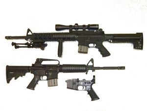 M16: ganz unten das Teil, das gedruckt wurde. Bild: Wikipedia, gemeinfrei