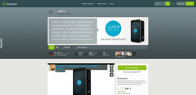 Screenshot www.startnext.de/shift7