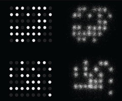 Das gewünschte Muster (links) und wie die DNA unter dem Mikroskop aussah (rechts). Bild: Nucleic Acid Memory Institute an der Boise State University / UM / Eigenes Werk