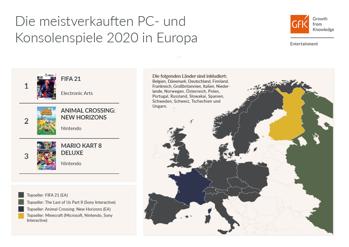 Top 3 Games-Charts Europa 2020 / Bild: "obs/GfK Entertainment GmbH"