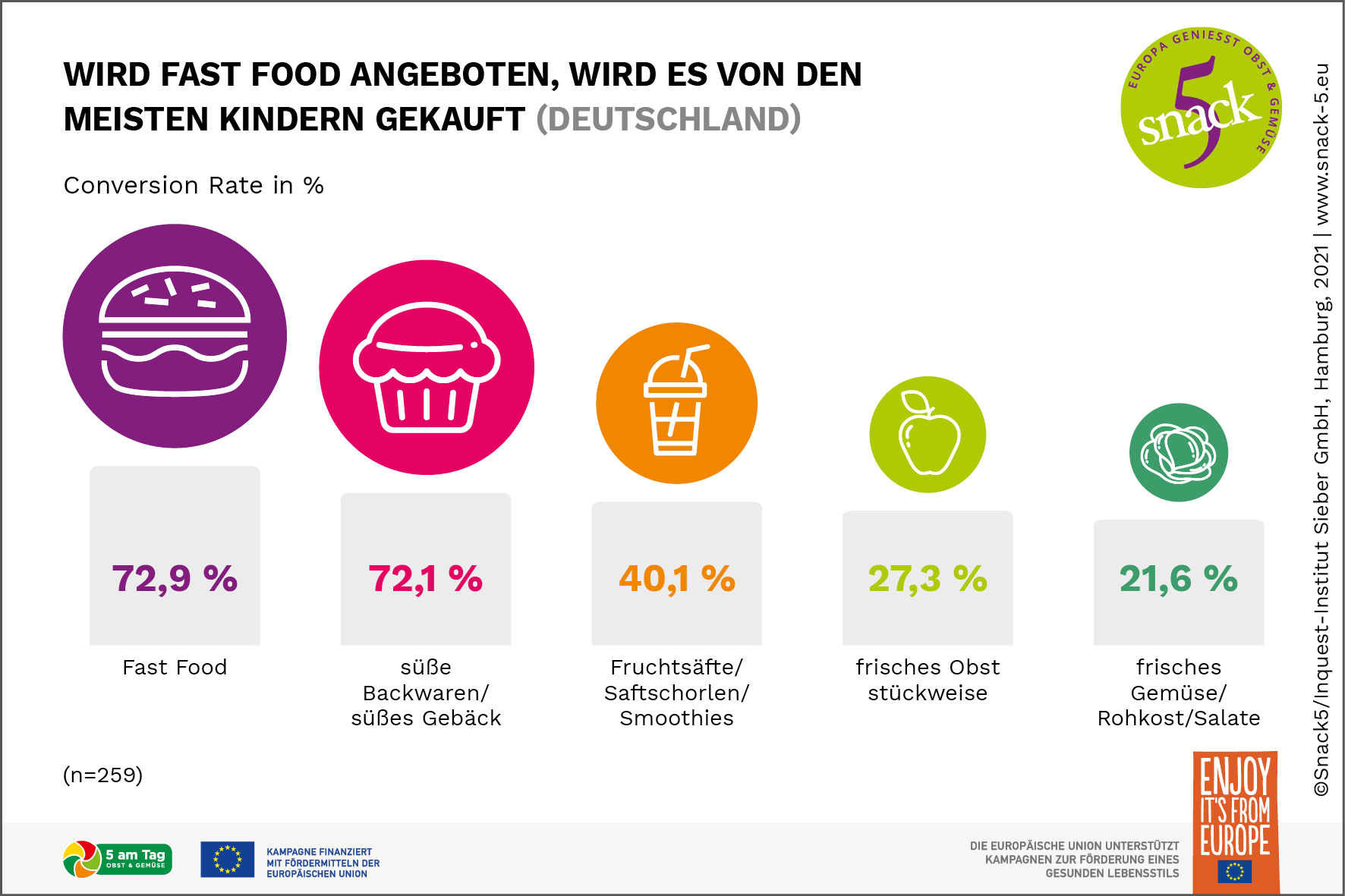 Wird Fast Food im Schulumfeld angeboten, wird es von den Kindern auch häufig gekauft. Bild: Servicebüro Snack5/ 5 am Tag e.V Fotograf: Servicebüro Snack 5