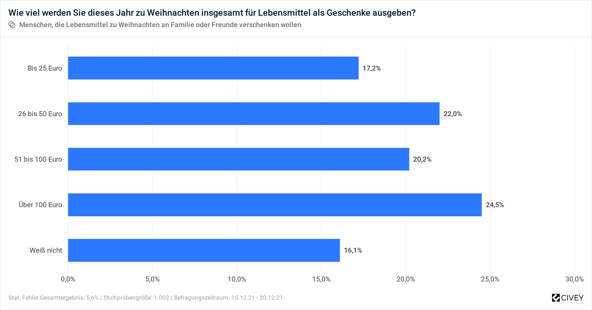 Wie viel werden Sie dieses Jahr zu Weihnachten insgesamt für Lebensmittel als Geschenke ausgeben? Bild: BVE Bundesvereinigung d. Dt. Ernährungsindustrie Fotograf: BVE Bundesvereinigung d. Dt. Ernährungsindustrie