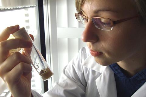 In der Muskulatur läuft schon in frühester Kindheit ein ständiger Kampf gegen den Verschleiß - das gilt für den Menschen und andere Säugetiere, aber etwa auch für die evolutiv gesehen viel älteren Fruchtfliegen. Das Bild zeigt die Diplomandin Anna Ulbricht mit einer Fliegenkultur. Bild: AG Höhfeld, Universität Bonn