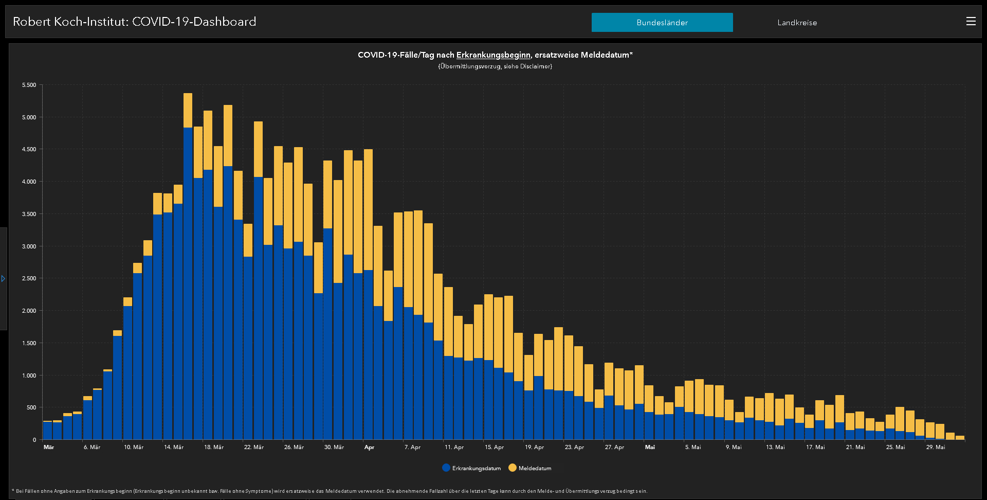 Bild: Screenshot RKI Internetseite: "https://experience.arcgis.com/experience/478220a4c454480e823b17327b2bf1d4" / Eigenes Werk