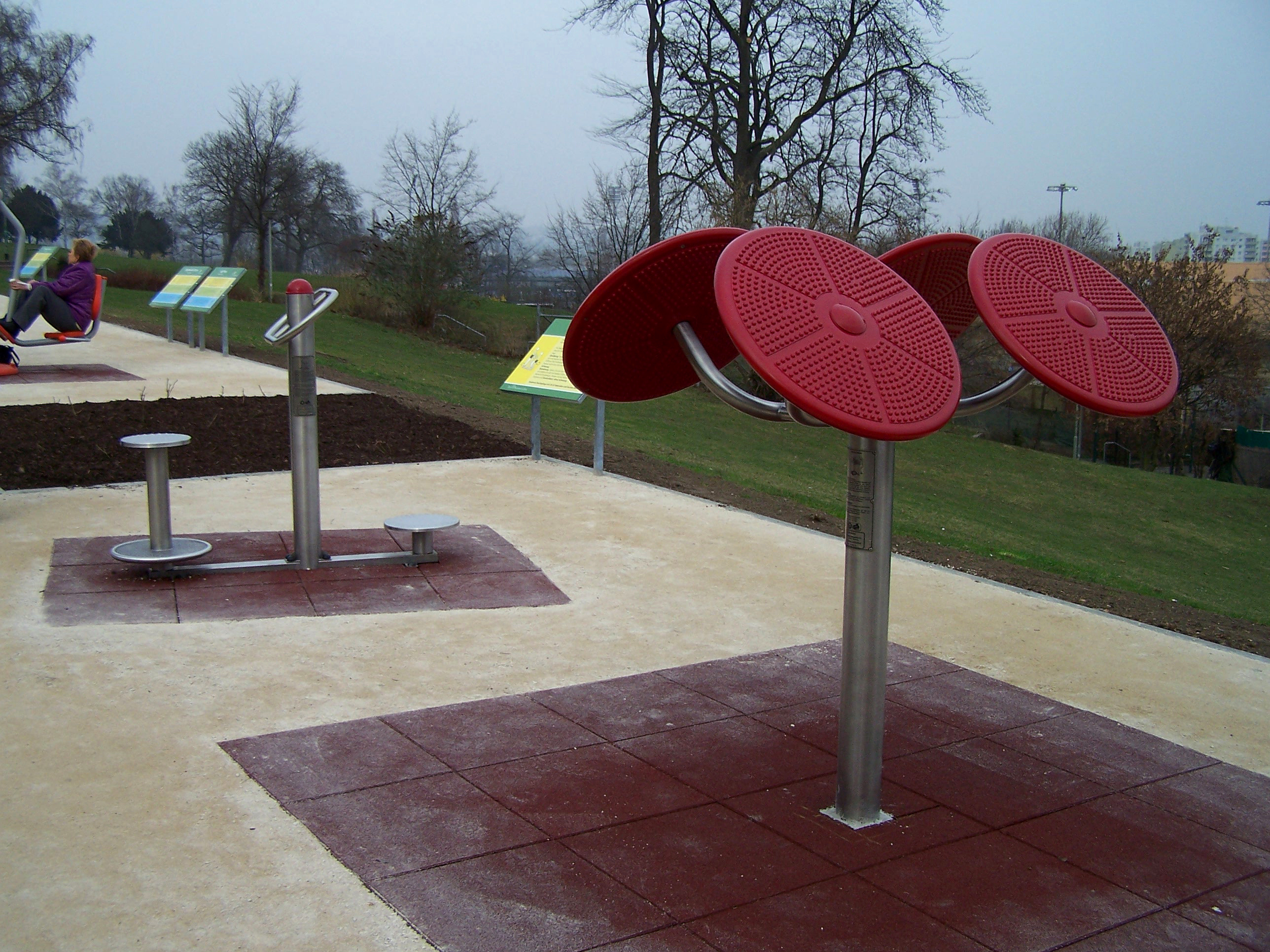 Öffentliche Fitnessgeräte für Senioren in einem Parcours am Bornheimer Hang
