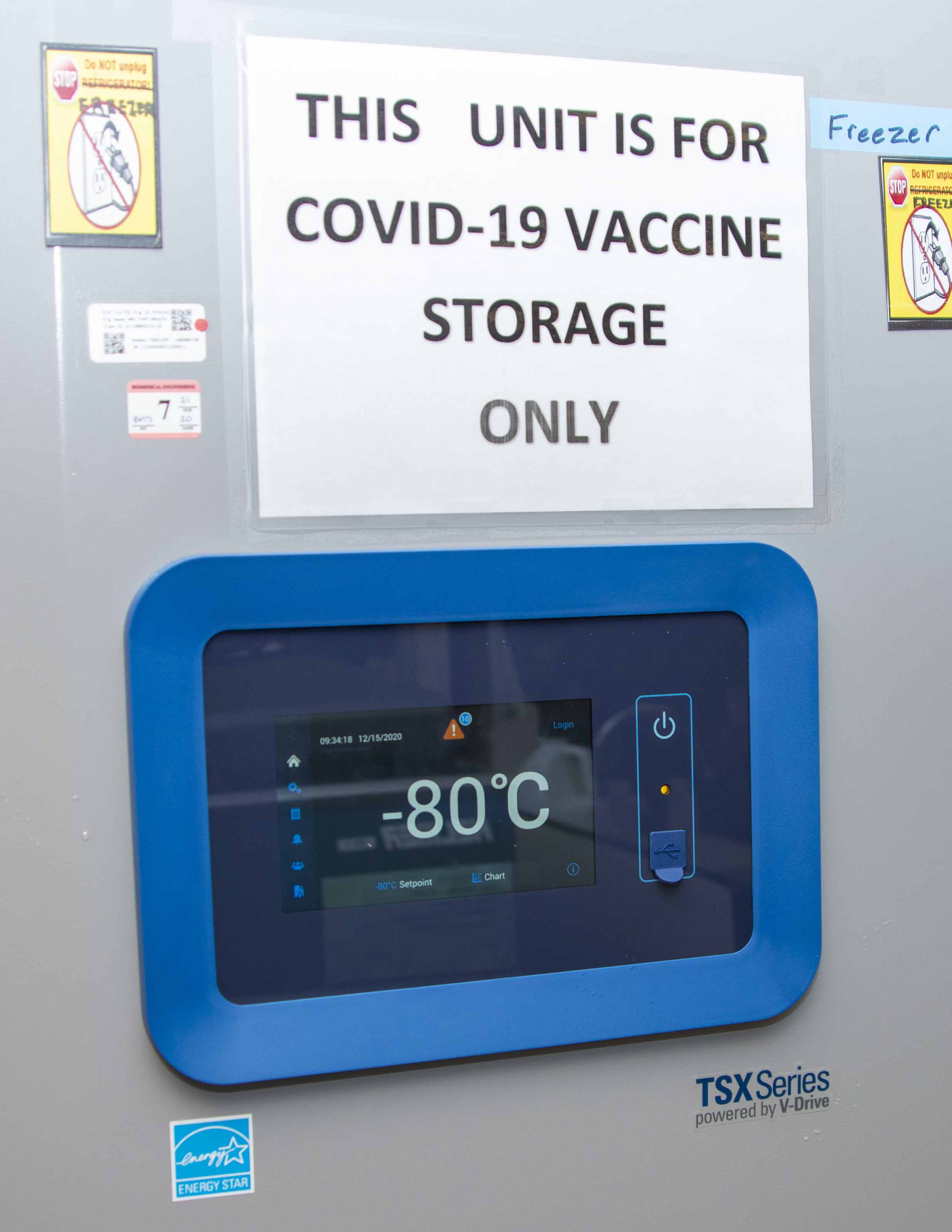 Lagerung des Impfstoffs in einem Ultratiefkühlschrank bei −80 °C im Dezember 2020 (Symbolbild)