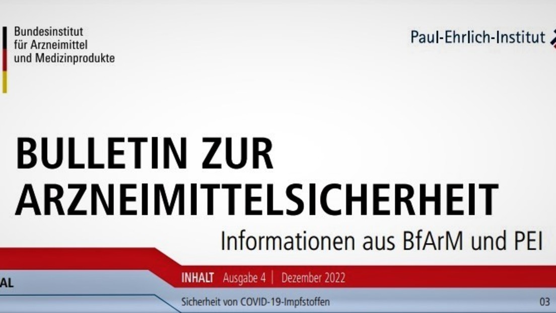Die Titelseite des neuesten Bulletins zur Arzneimittelsicherheit in Deutschland Bild: Screenshot: PEI-Bulletin 04/22 / RT