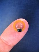 Am Rand der künstlichen Augenlinse steckt ein 2,5 mal 2,6 Millimeter großer Sensor, der den Augeninnendruck misst. Bild: © Fraunhofer IMS