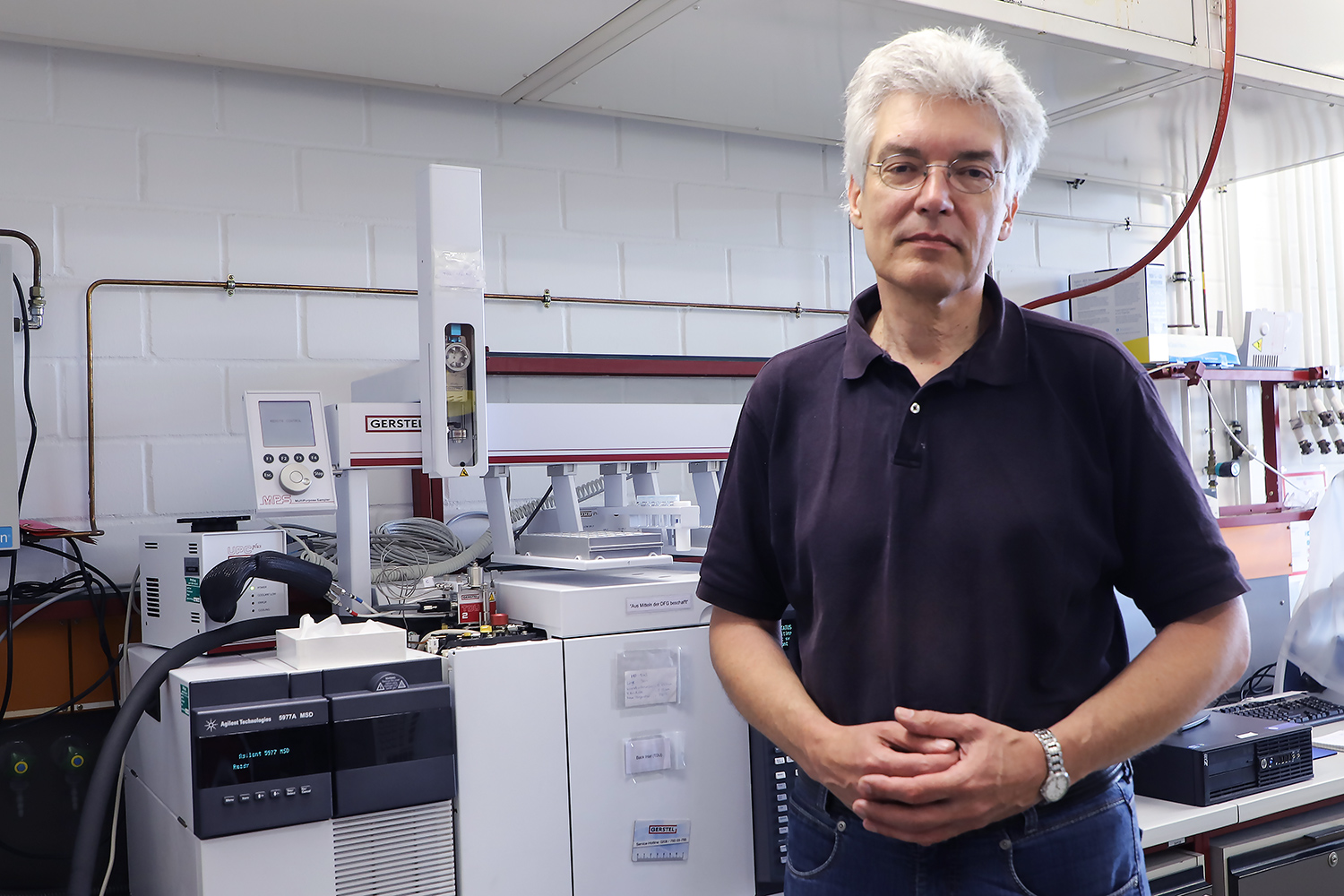 Professor Stefan Schulz untersucht die Duftstoffe von Tuberkulosebakterien unter anderem mit einem Gaschromatographen.