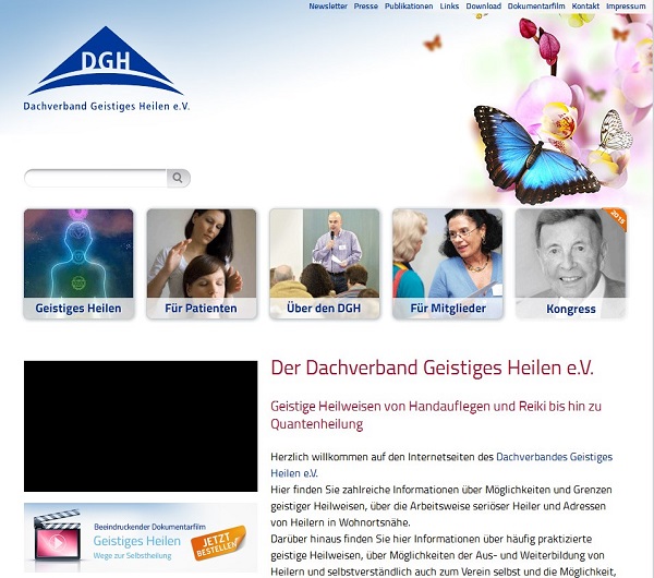 Screenshot von der Webseite: "Dachverband Geistiges Heilen"