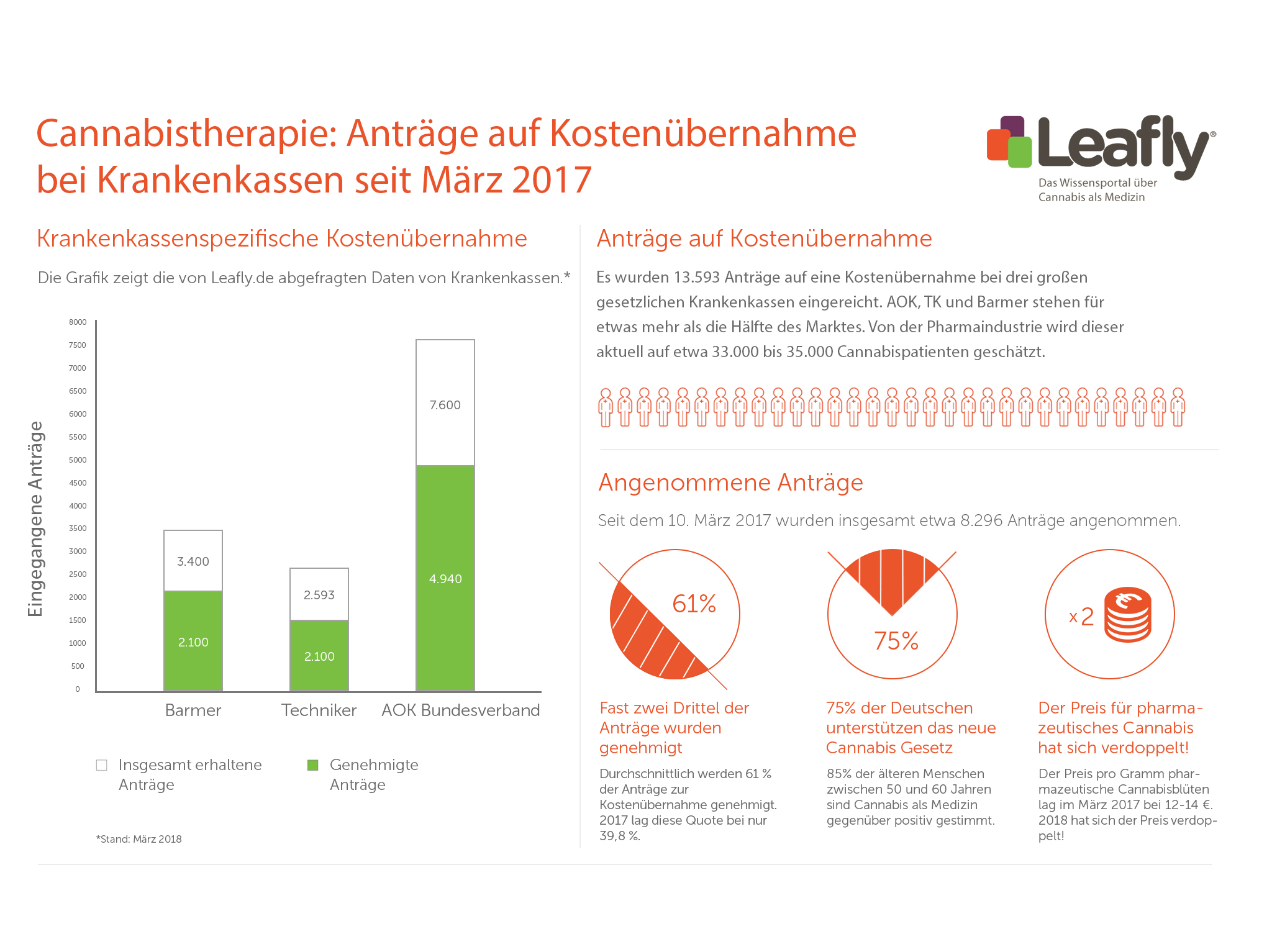 Cannabistherapie: Anträge auf Kostenübernahme bei Krankenkassen seit März 2017. Bild: "obs/Leafly Deutschland/Leafly.de"