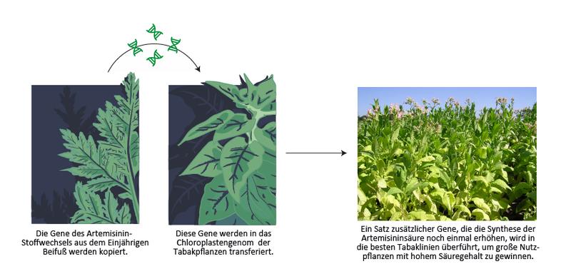 Neue Methoden der Pflanzenbiotechnologie könnten die kostengünstige Massenproduktion eines Malariamedikaments ermöglichen. Quelle: Fuentes et al., eLife (idw)
