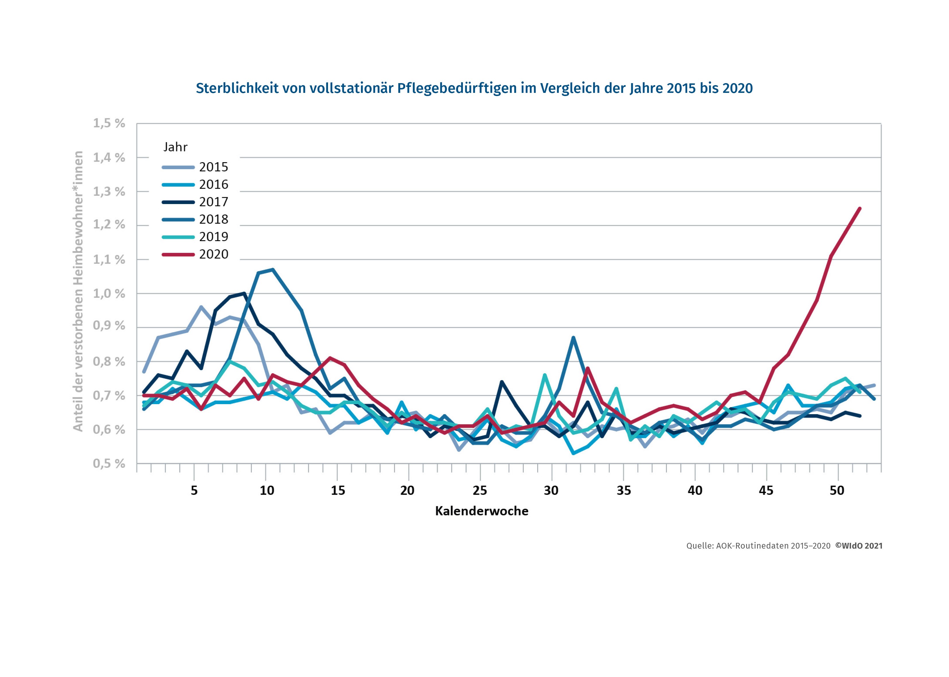 Sterblichkeit von vollstationär Pflegebedürftigen im Vergleich der Jahre 2015 bis 2020 Bild: Wissenschaftliches Institut der AOK Fotograf: Wissenschaftliches Institut der AOK
