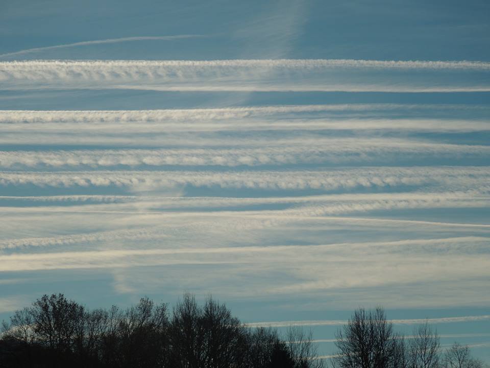 Persistente Kondensstreifen, sogenannte Chemtrails, über Eifa (Vogelsberg / Hessen) am 6.12.2013
