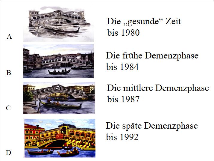 Darstellungen der Rialto-Brücke vom Graphiker und Designer Carolus Horn in verschiedenen Stadien seiner Alzheimer-Krankheit Quelle: Carolus Horn (idw)