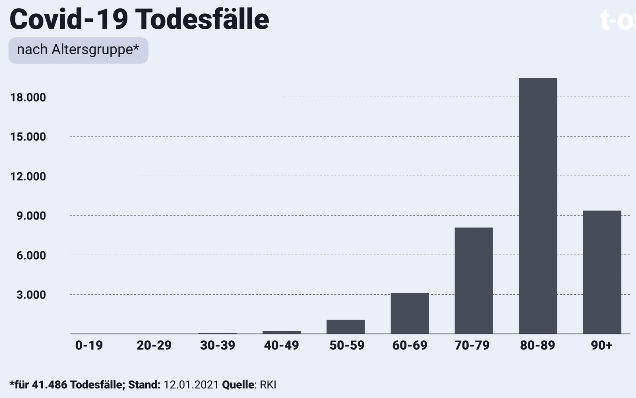 Man beachte die „vielen“ Todesfälle in der Gruppe der unter Fünfzigjährigen. Ob die auch alle überlebt hätten, wenn die Bevölkerung wie geplant „durchgeimpt“ worden wäre. Bild: UM /RKI