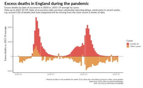Daten aus den USA, Quelle: CDC (https://www.cdc.gov/nchs/nvss/vsrr/covid19/excess_deaths.htm#dashboard) / WB / Eigenes Werk