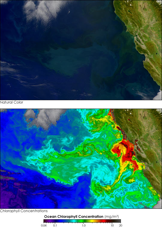 Phytoplankton im aufströmenden nährstoffreichen Wasser vor der Küste Kaliforniens
