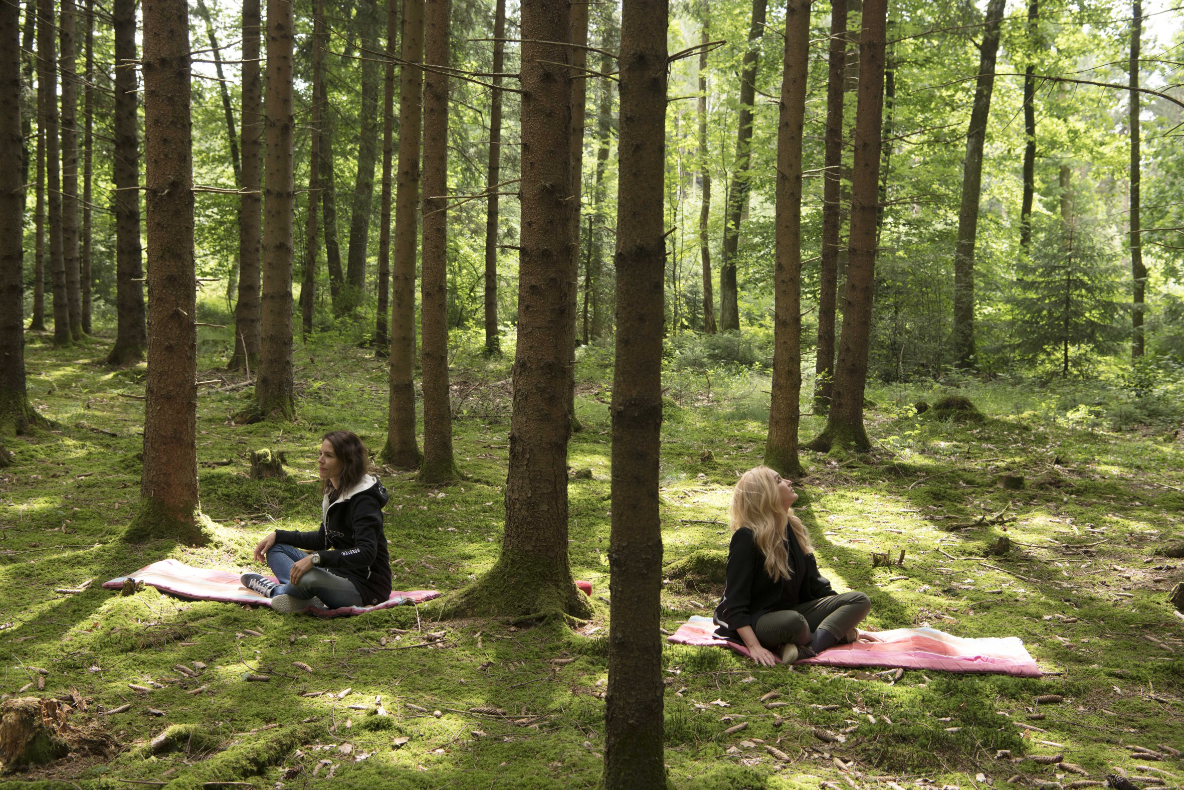 Dr. Melanie H. Adamek (rechts im Bild) und ihr persönliches Waldbaden-Experiment. Bild: "obs/Dr. Melanie H. Adamek/(c)Optimum Medien & Service GmbH"