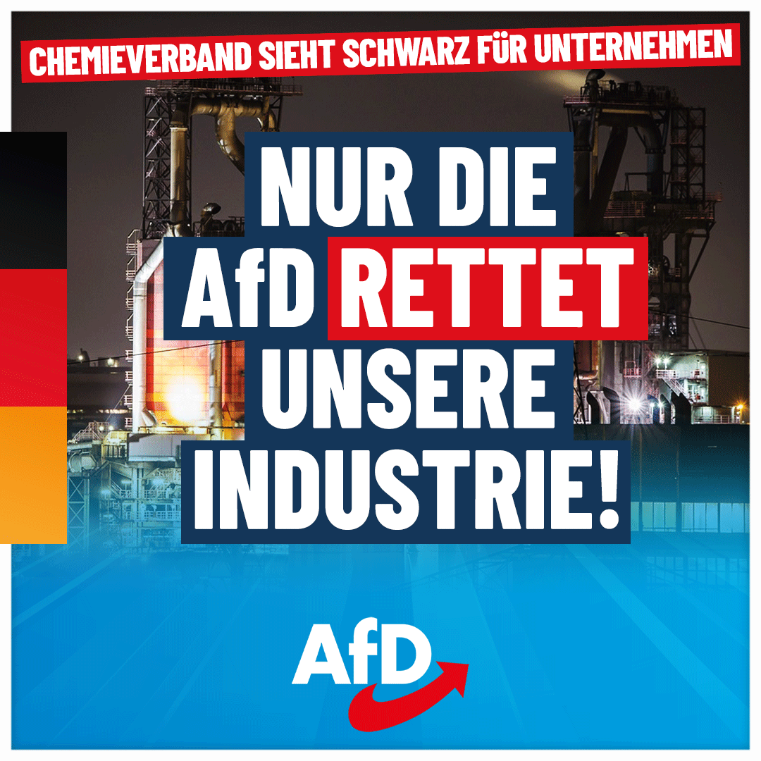 Chemieverband sieht schwarz für die Branche: Nur die AfD rettet unsere Industrie!