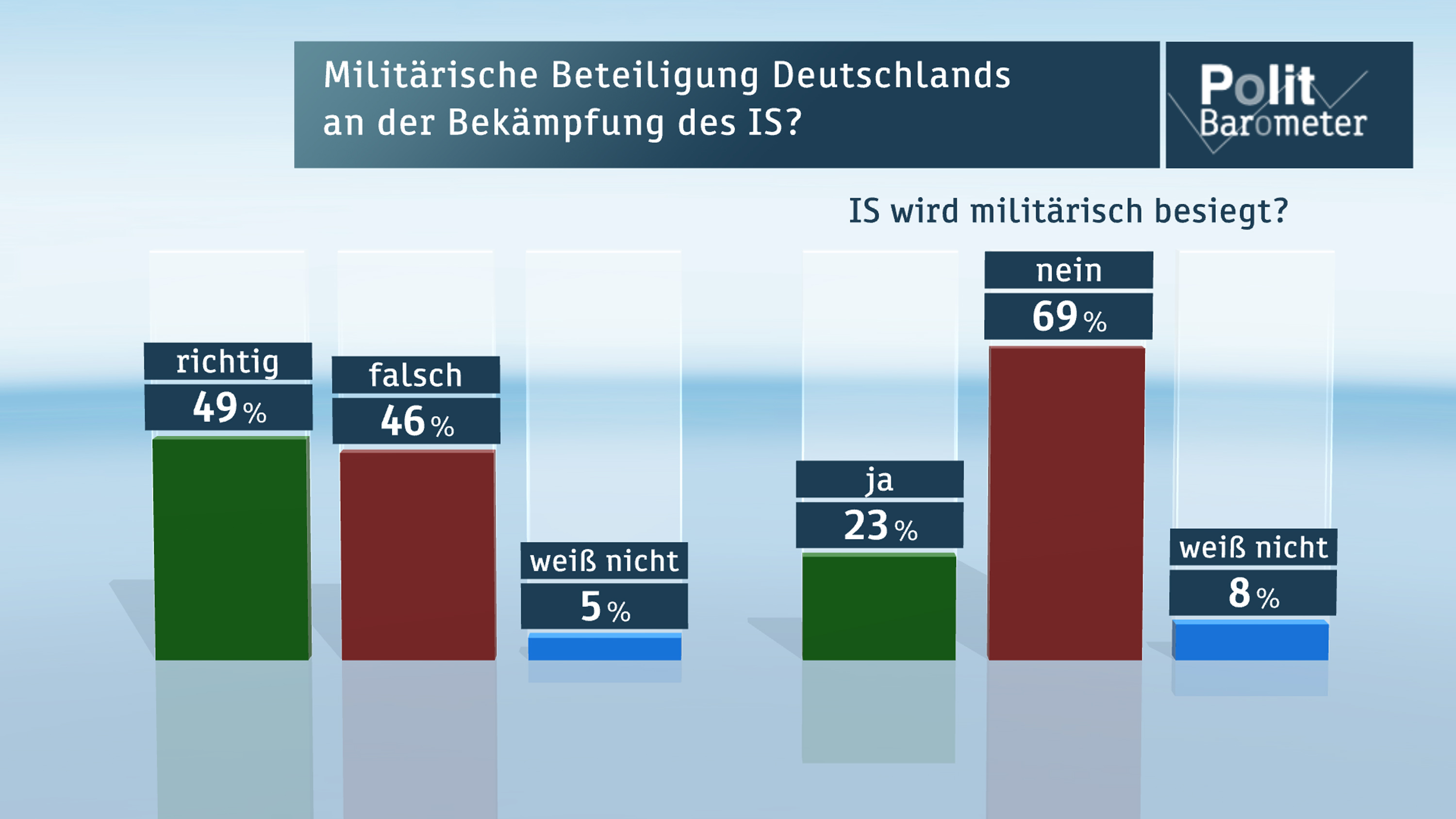 Zurück zu ZDF-Politbarometer Dezember 2015:r Nur Minderheit glaubt, dass der IS militärisch besiegt werden kann