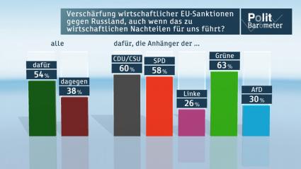 Verschärfung wirtschaftlicher EU-Sanktionen gegen Russland, auch wenn das zu wirtschaftlichen Nachteilen für uns führt? Bild: "obs/ZDF/ZDF/Forschungsgruppe Wahlen"