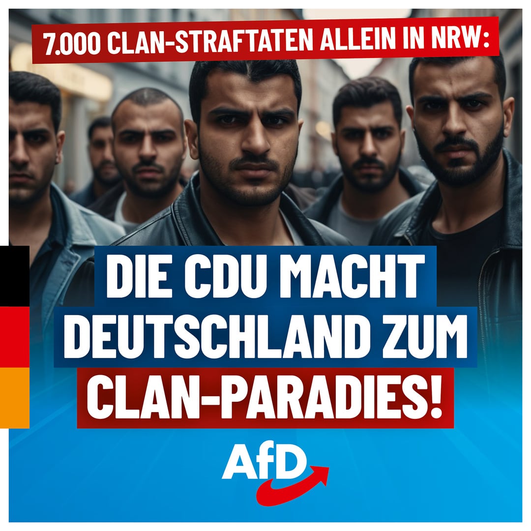 Zurück zu AfD: 7.000 Clan-Straftaten allein in NRW, 7.000-mal bleibt die CDU untätig!