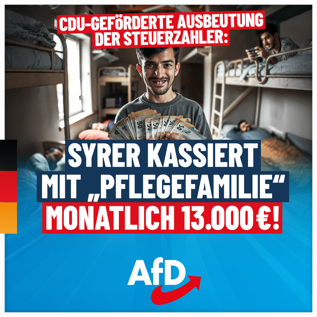 Zurück zu CDU-geförderte Ausbeutung der Steuerzahler: Syrer kassiert mit „Pflegefamilie“ monatlich 13.000 €!