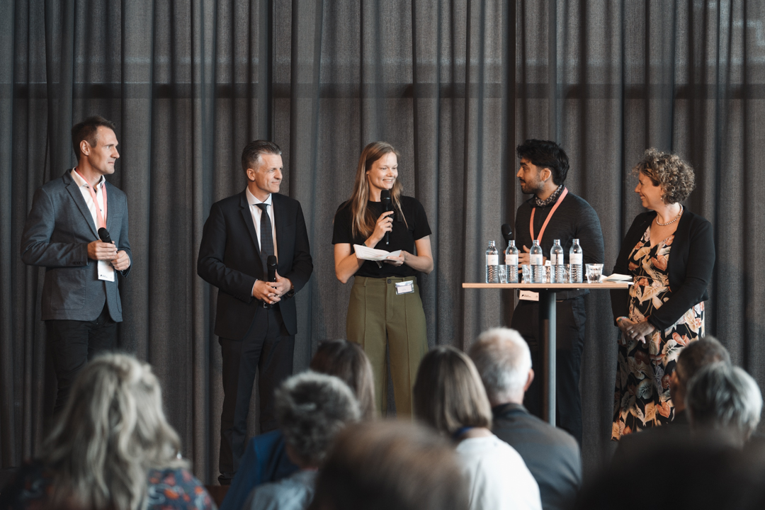 Fabian Stankewitz (Verbandsgemeindebürgermeister in der Westlichen Börde), Thorsten Frei (Chef des Bundeskanzleramtes), Lisa Klein (Leiterin der Allianz der Gestalter bei ProjectTogether), Milad Tabesch (Initiator von Ruhrpott für Europa), Diana Pretzell (Erste Bürgermeisterin der Stadt Mannheim) (v.l.n.r.) (2025) Bild: ProjectTogether gGmbH Fotograf: Marlene Charlotte Limburg