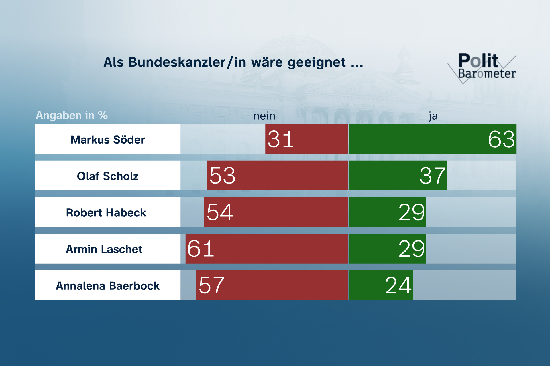 Zurück zu ZDF-Politbarometer April 2021: Söder weiterhin deutlich vor Laschet