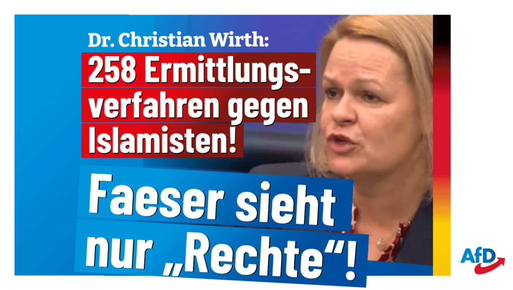 Zurück zu AfD Bundestagsreden (31.5): 258 Ermittlungsverfahren gegen Islamisten – aber die Ministerin sieht nur „Rechte“!