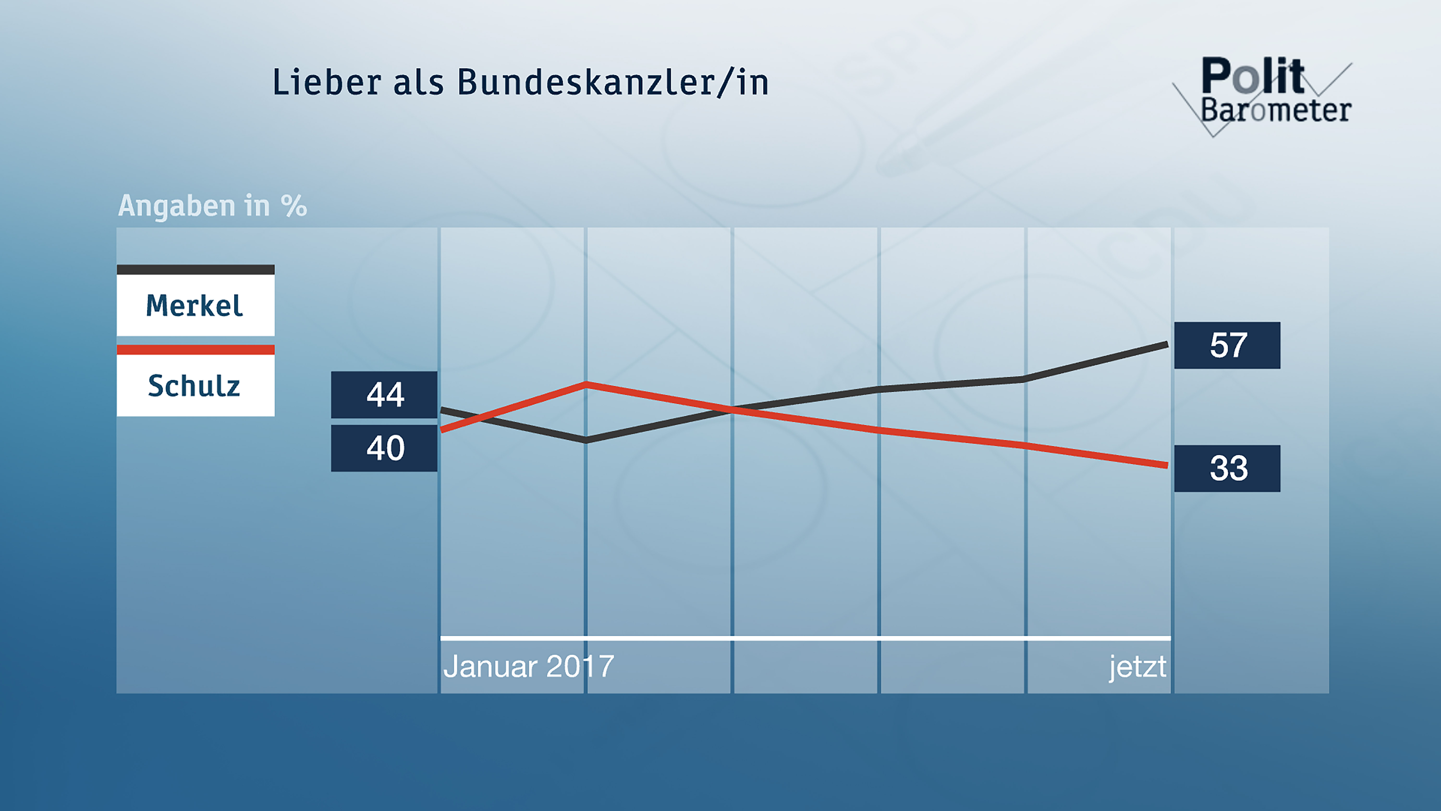Zurück zu ZDF-Politbarometer Mai 2017: Merkel mit großem Abstand vor Schulz