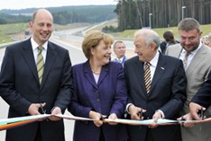 Foto mit Bundeskanzlerin Angela Merkel bei der A6-Freigabe nach Tschechien im September 2008©Bundesregierung