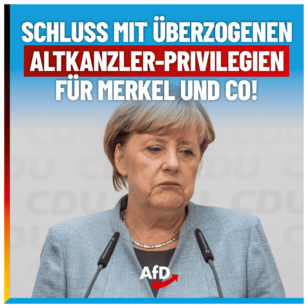 Zurück zu AfD: Schluss mit überzogenen Altkanzler-Privilegien für Merkel und Co!