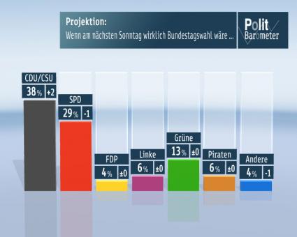 Zurück zu ZDF-Politbarometer September II 2012 / CDU/CSU legt kräftig zu - K-Frage: Merkel deutlich vor Steinbrück