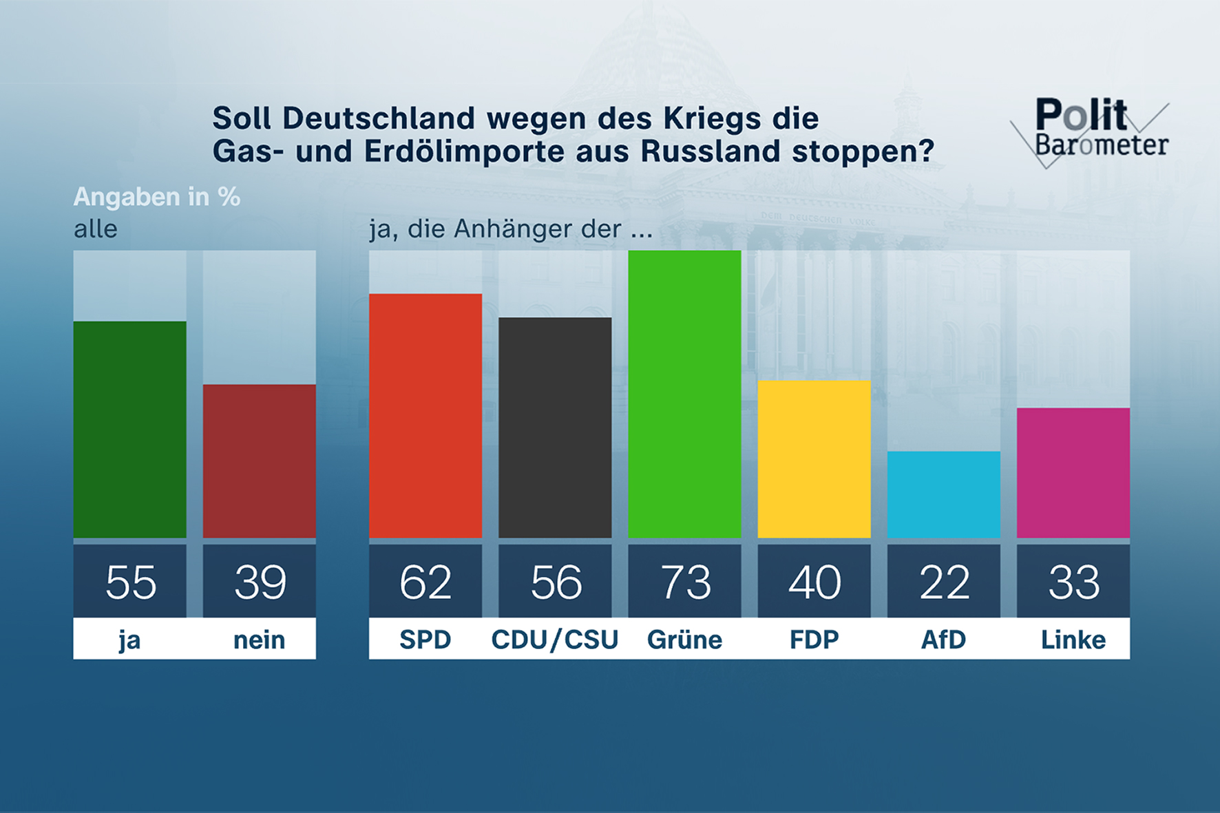 Zurück zu ZDF-Politbarometer März 2022: Mehrheit für Importstopp von Gas und Öl aus Russland