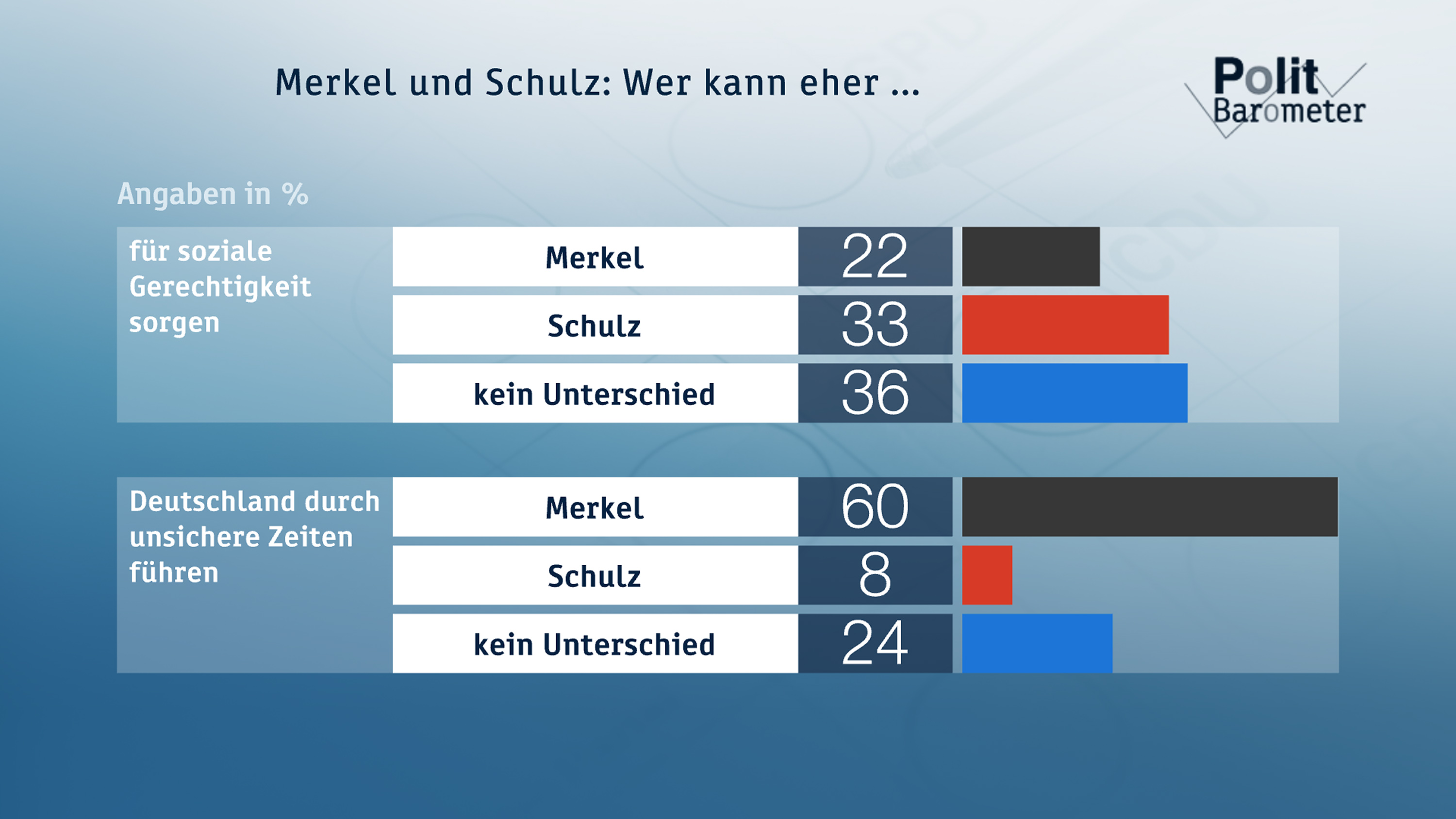 Zurück zu ZDF-Politbarometer September I 2017: K-Frage: Vorsprung Merkel vor Schulz vergrößert sich