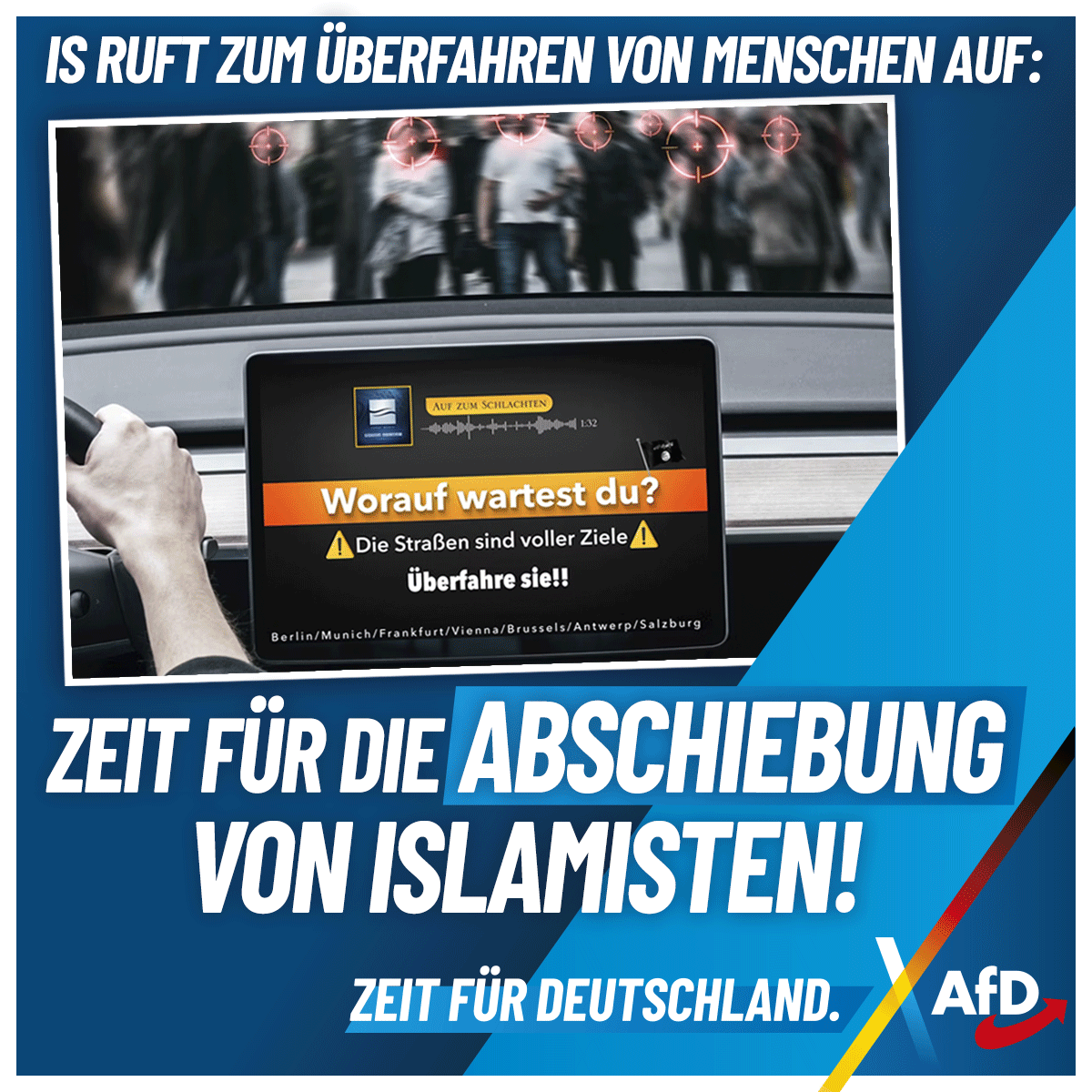 Zurück zu AfD: IS ruft zum Überfahren von Menschen auf: Zeit für die Abschiebung von Islamisten!