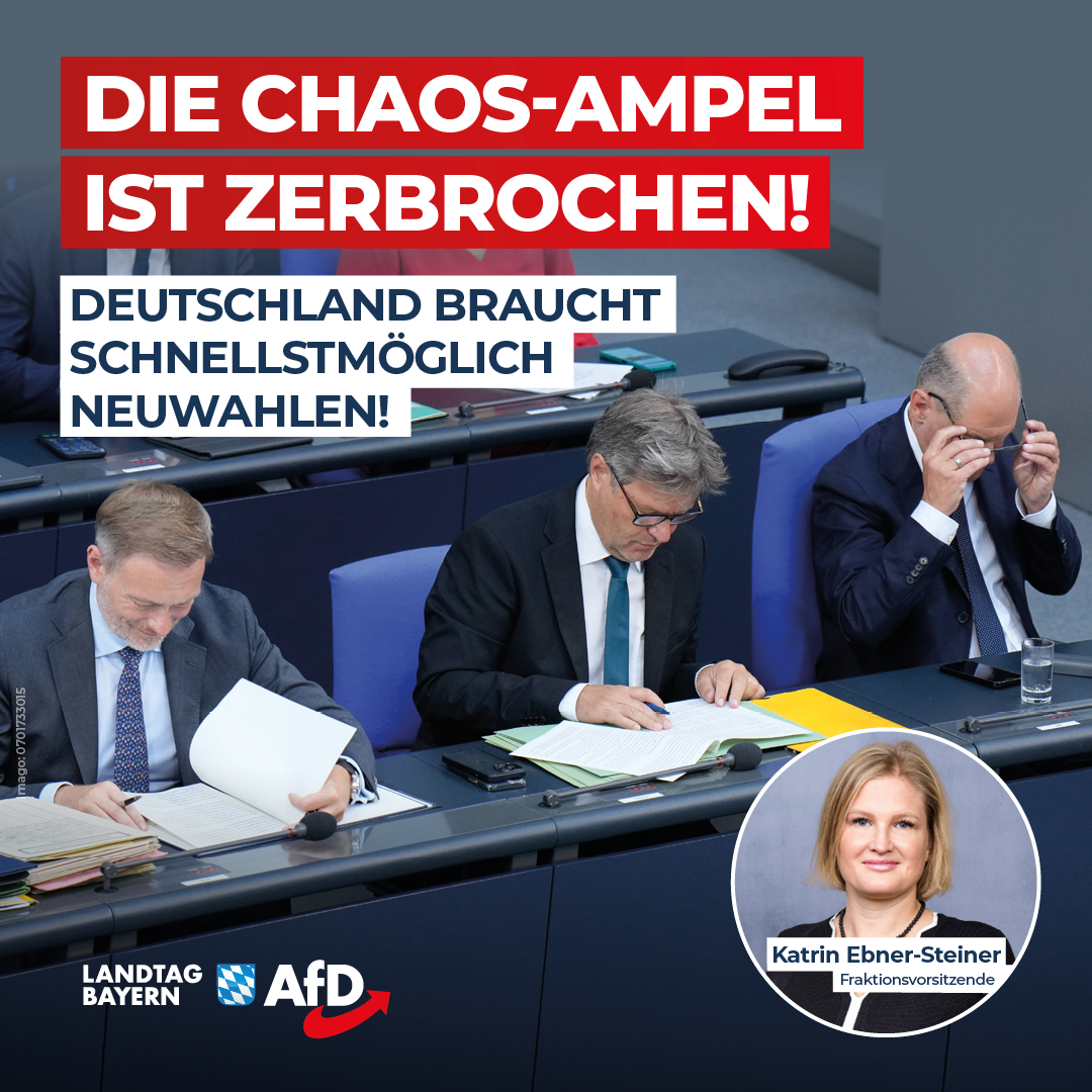 Zurück zu Katrin Ebner-Steiner: Die Chaos-Ampel ist zerbrochen – Deutschland braucht schnellstmöglich Neuwahlen!