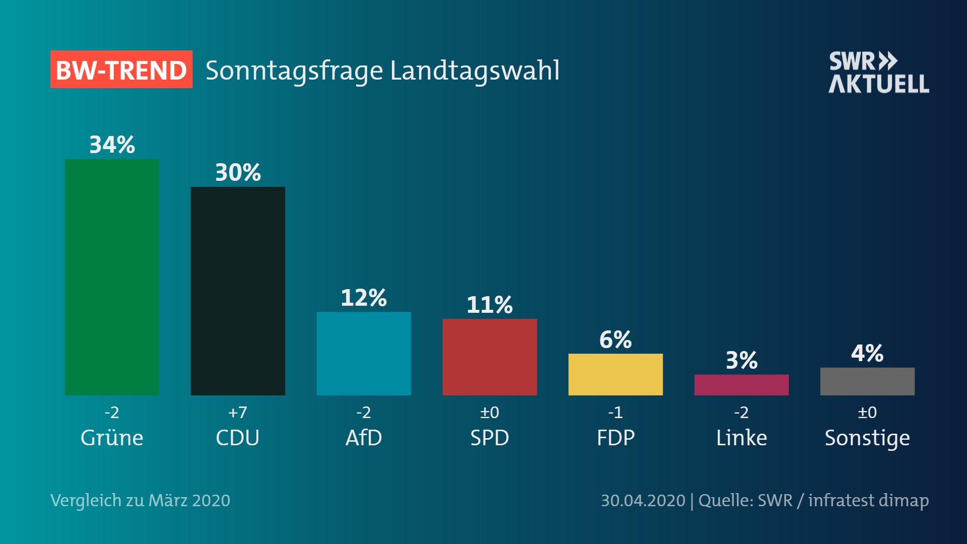 Grafik zum BW-Trend Sonntagsfrage Landtagswahl. Bild: "obs/SWR - Südwestrundfunk"