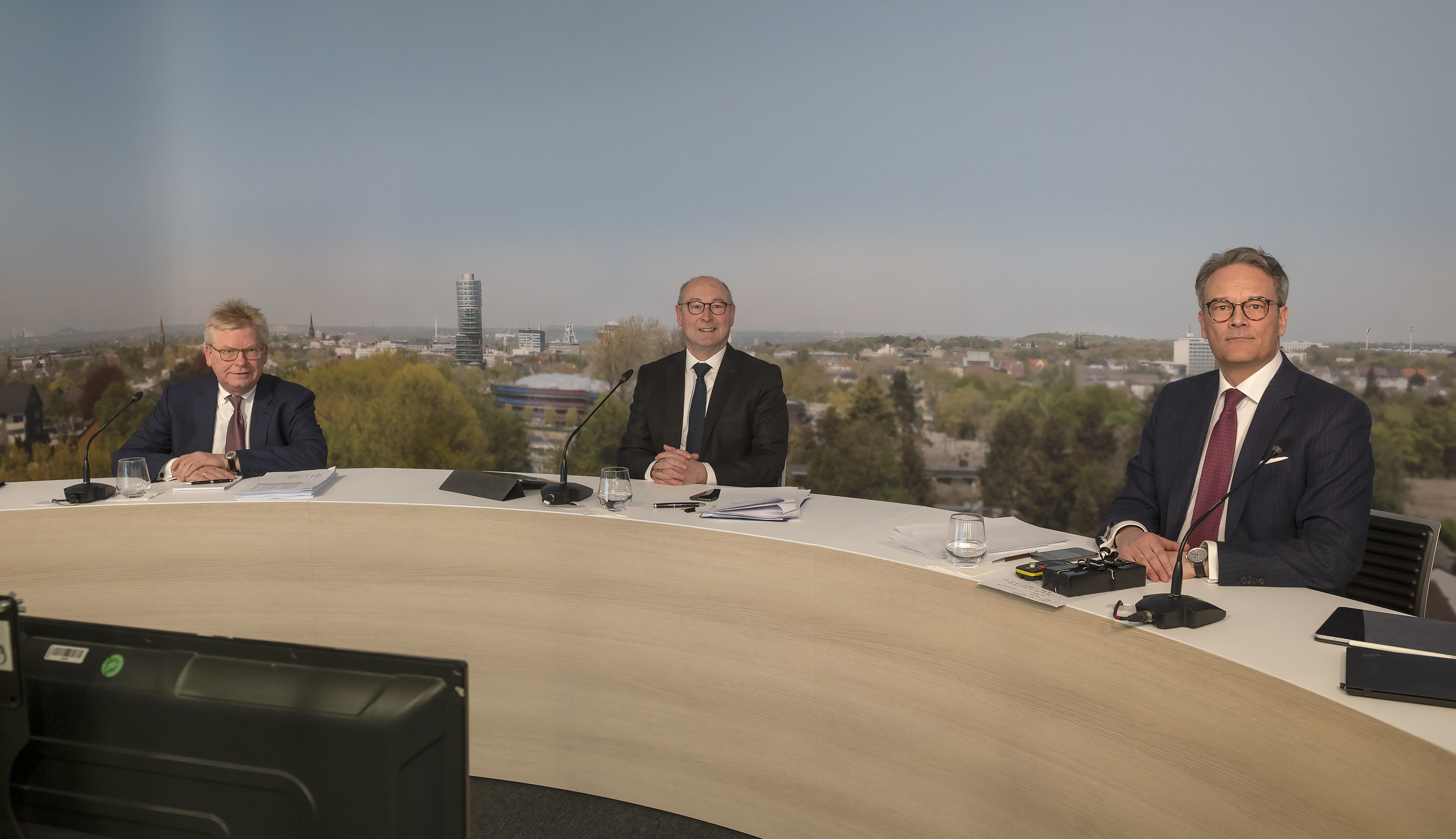 Digitale Vollversammlung des Initiativkreises Ruhr am 20. März 2021 (v.l.): Co-Moderator Dr. Andreas Maurer, Moderator Rolf Buch und Dirk Opalka, Geschäftsführer der Initiativkreis Ruhr GmbH, führten durch die Sitzung. Bild: Initiativkreis Ruhr GmbH Fotograf: Initiativkreis Ruhr GmbH