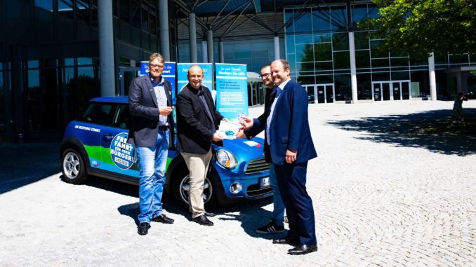 Das AfD-Diesel-Mobil startet seine Deutschland-Tour : (v.l.n.r.) Stephan Protschka und Guido Reil vom AfD-Bundesvorstand übergaben die Fahrzeugschlüssel an Gerd Mannes und Markus Bayerbach bei der Schlüsselübergabe