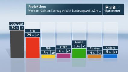 Zurück zu ZDF-Politbarometer Oktober II 2012 / CDU/CSU und Grüne rauf - SPD runter - Piraten raus