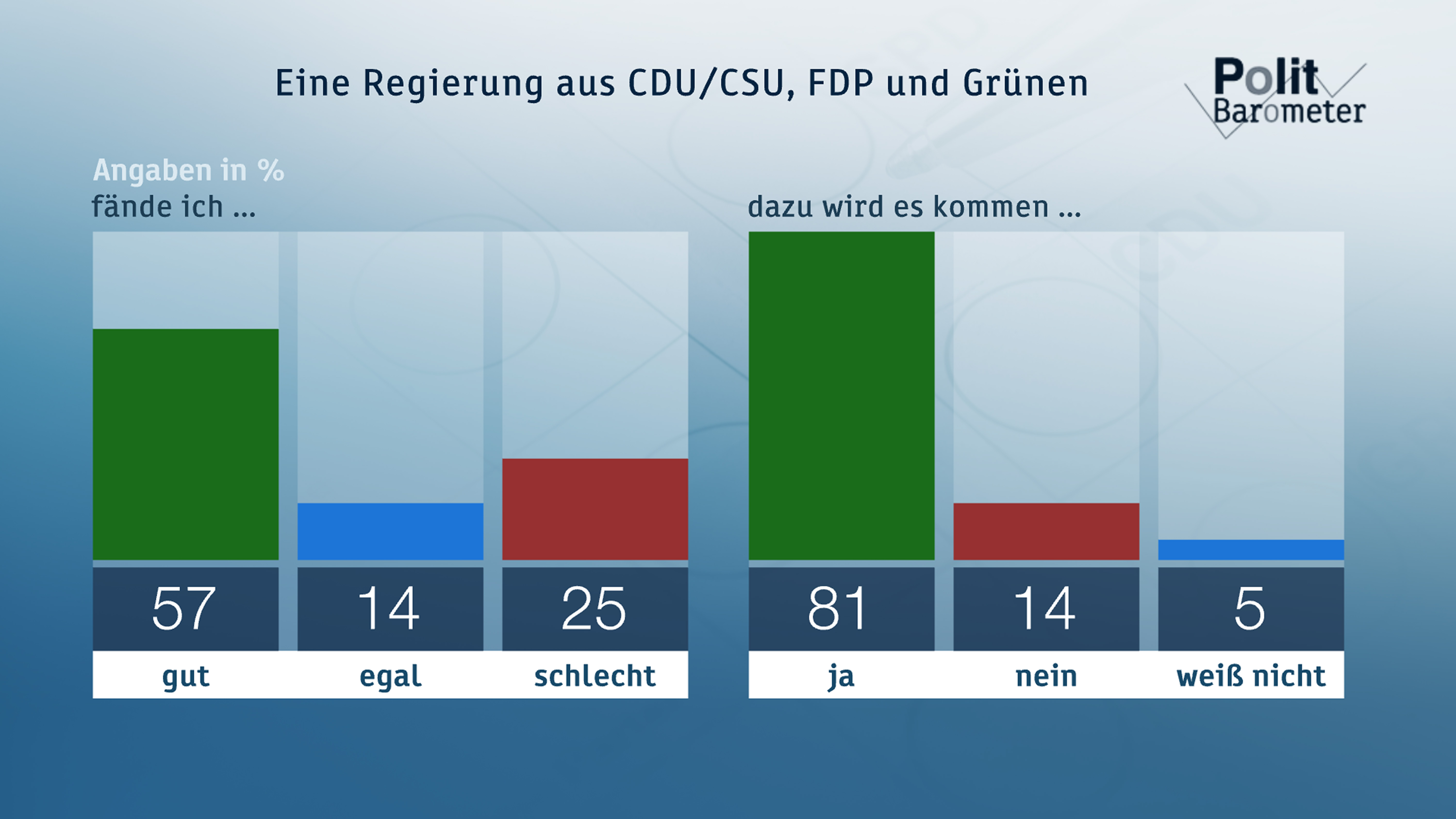 Zurück zu ZDF-Politbarometer Oktober II 2017: Wachsende Mehrheit rechnet mit "Jamaika"-Koalition