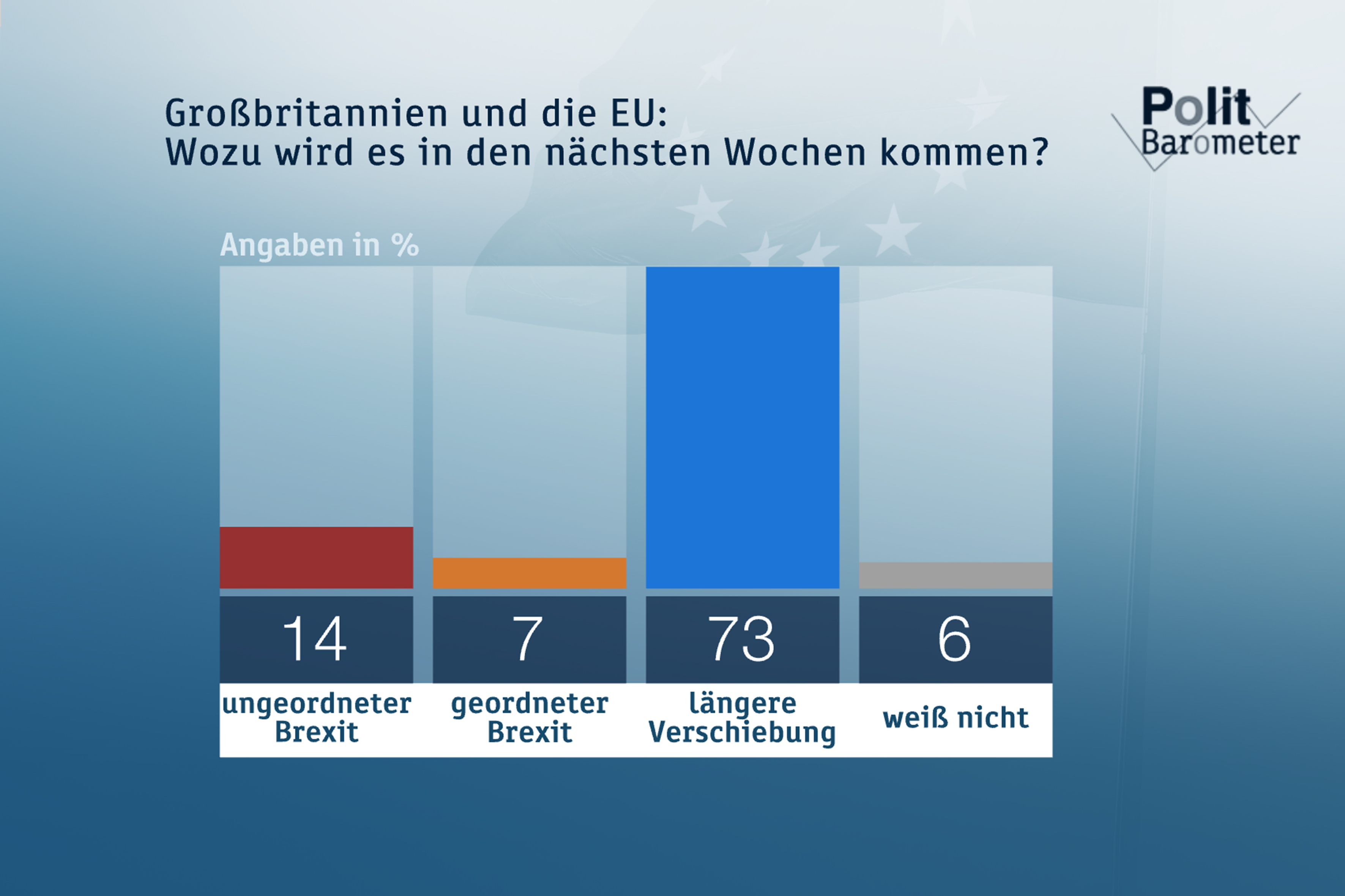 Zurück zu ZDF-Politbarometer März II 2019: Mehrheit gegen längeren Aufschub der Brexit-Entscheidung