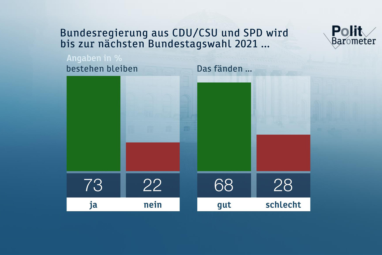 Zurück zu ZDF-Politbarometer November I 2019: Deutliche Mehrheit will Fortsetzung der Koalition aus CDU/CSU und SPD