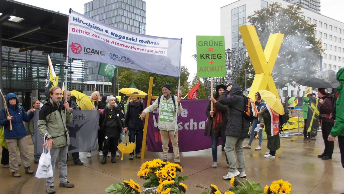 Proteste bei der Eröffnung der 48. Bundesdelegiertenkonferenz von Bündnis 90/Die Grünen in Bonn am 14. Oktober 2022