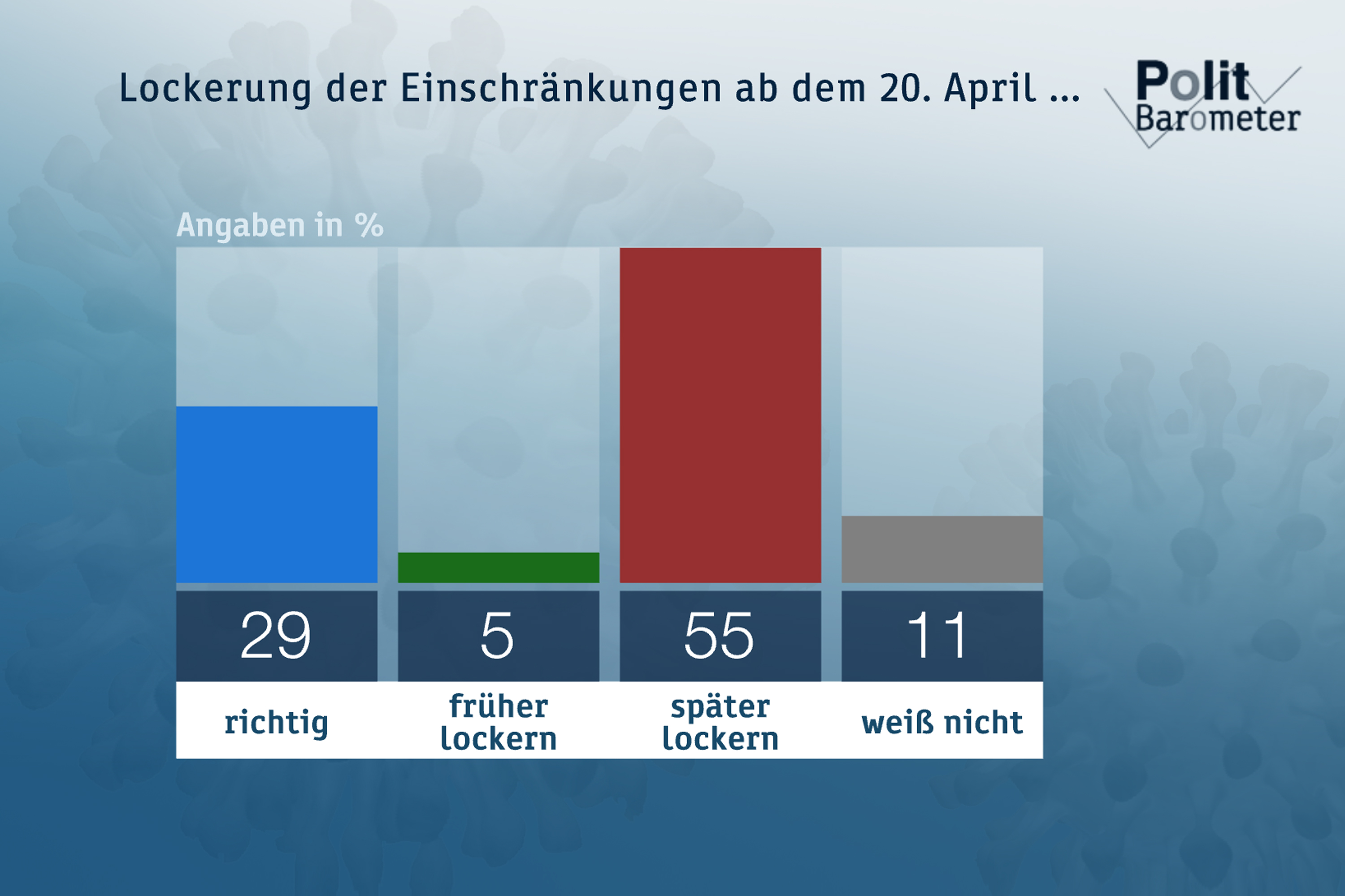 Zurück zu ZDF-Politbarometer April I 2020: Mehrheit zurückhaltend bei Lockerung der Corona-Maßnahmen